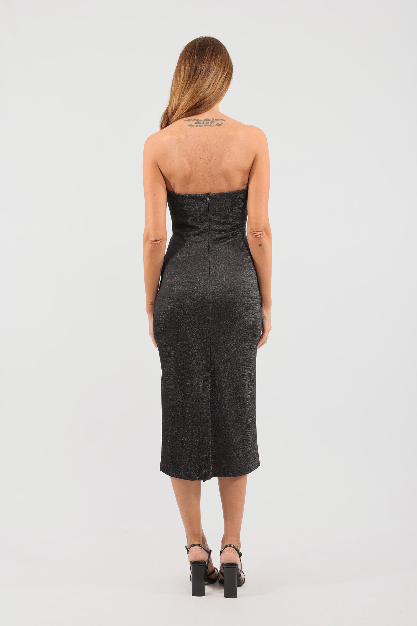 Abito midi con scollo a cuore e filo lurex.