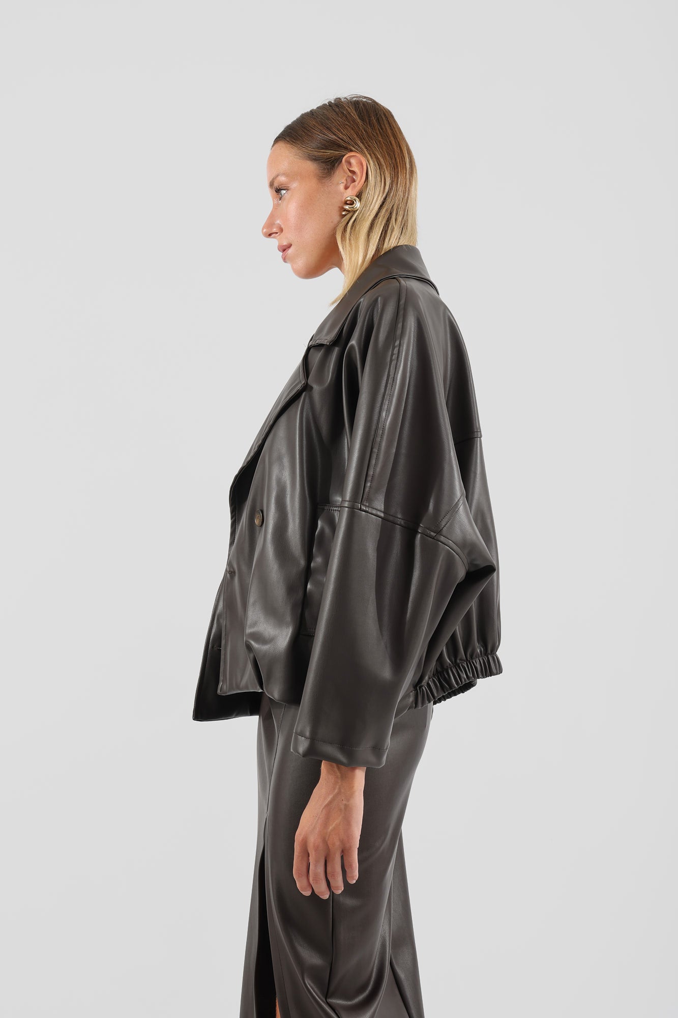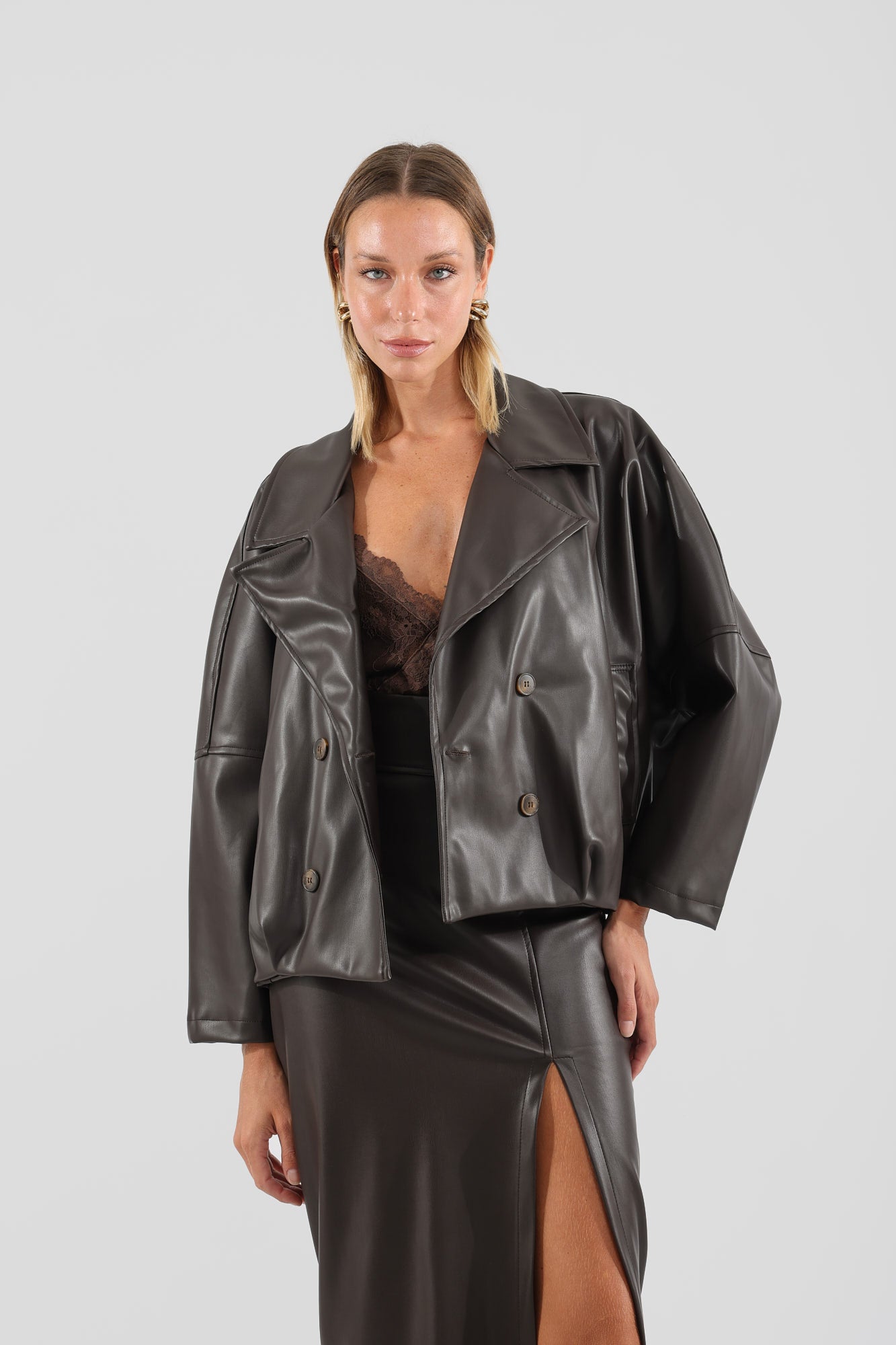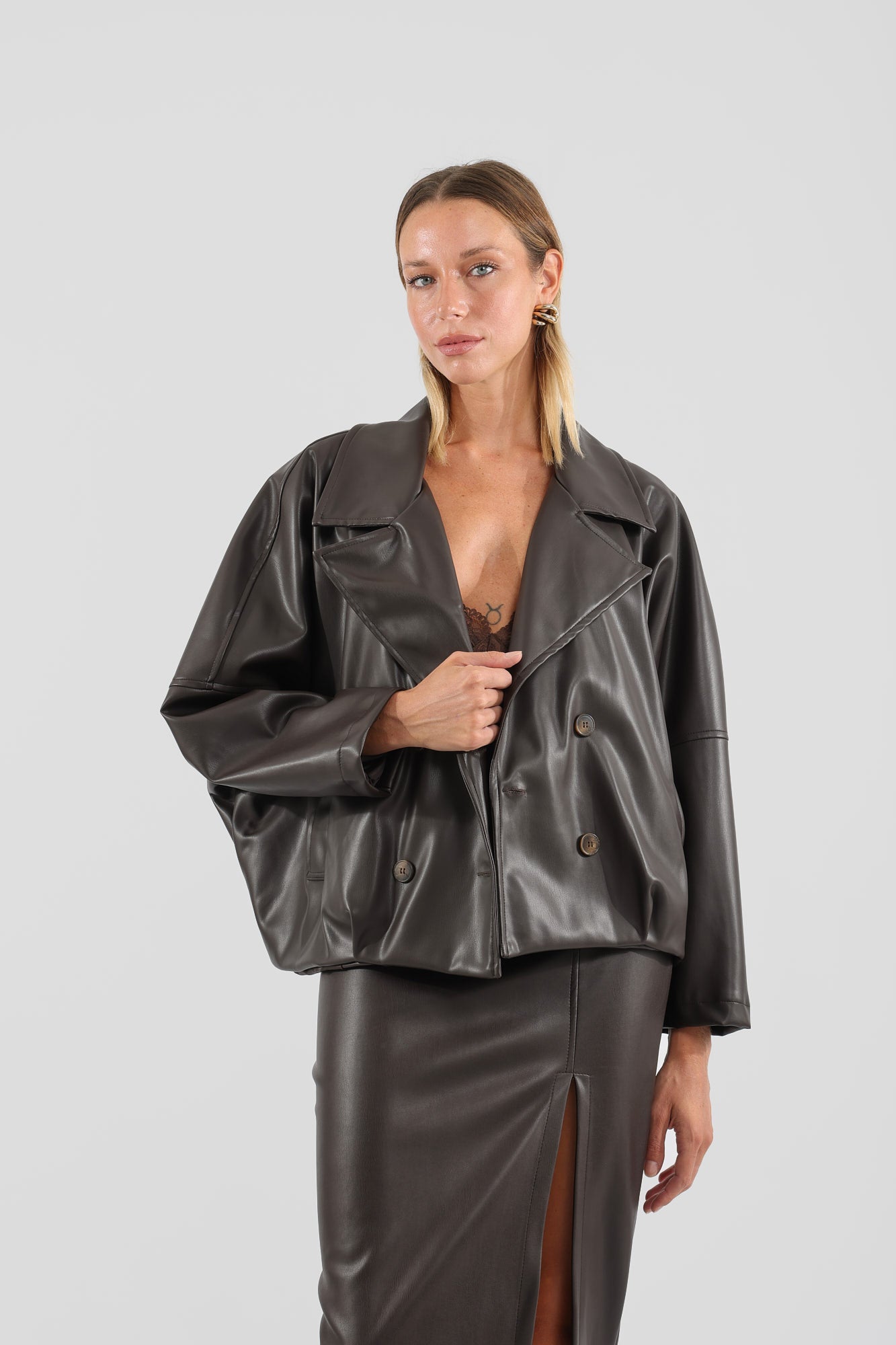 Giacca in ecopelle doppio petto.
