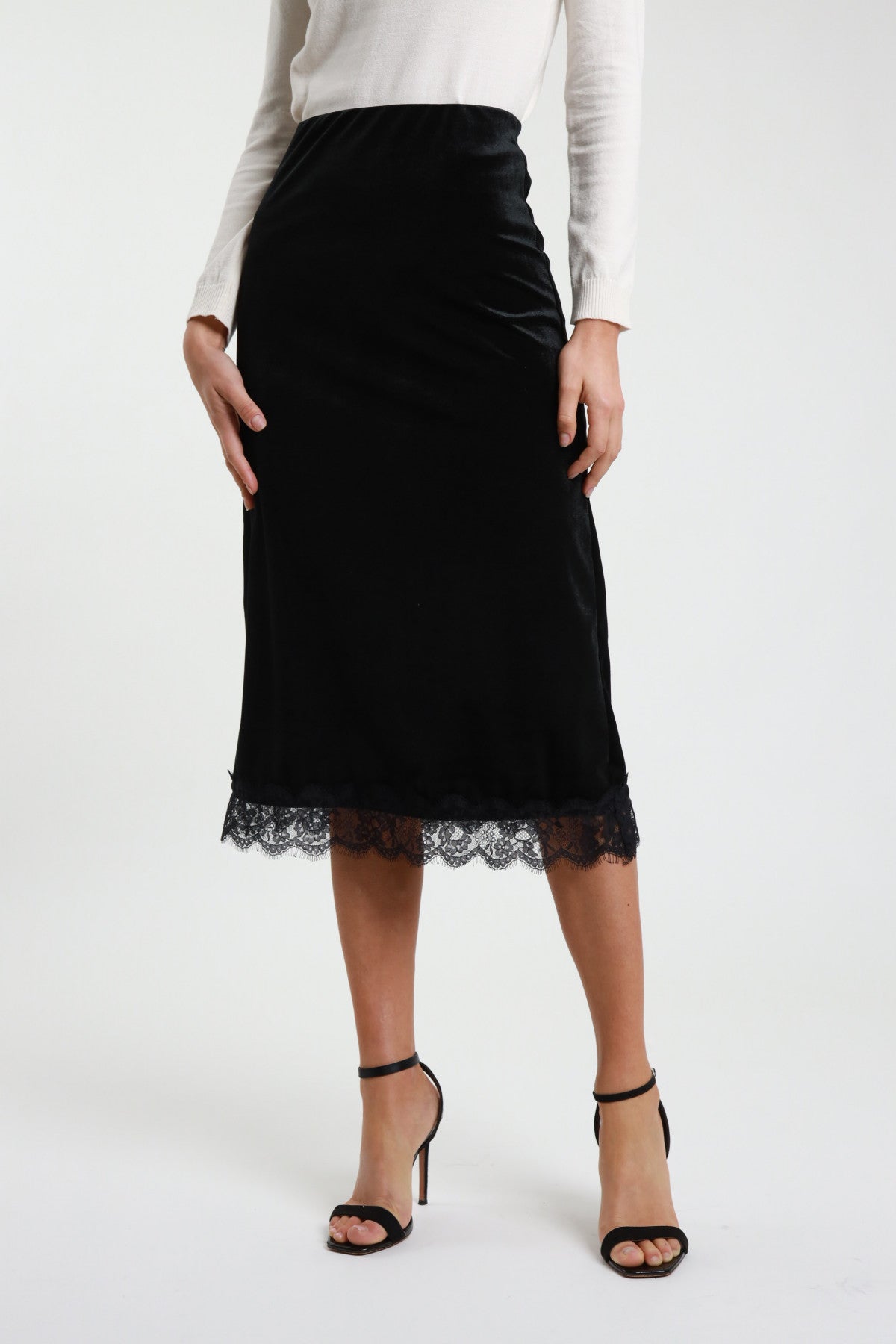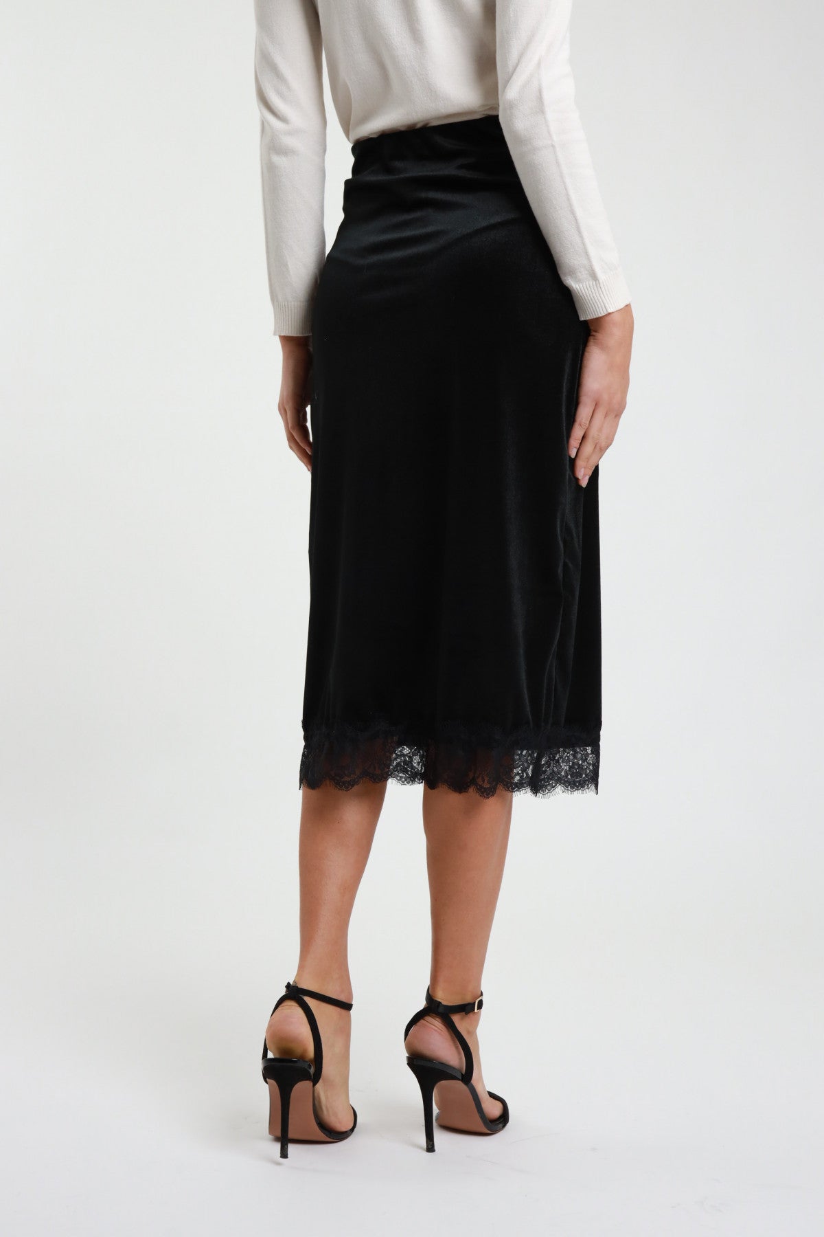 Gonna Midi in Ciniglia con Pizzo sul Fondo, Elastico in Vita.
