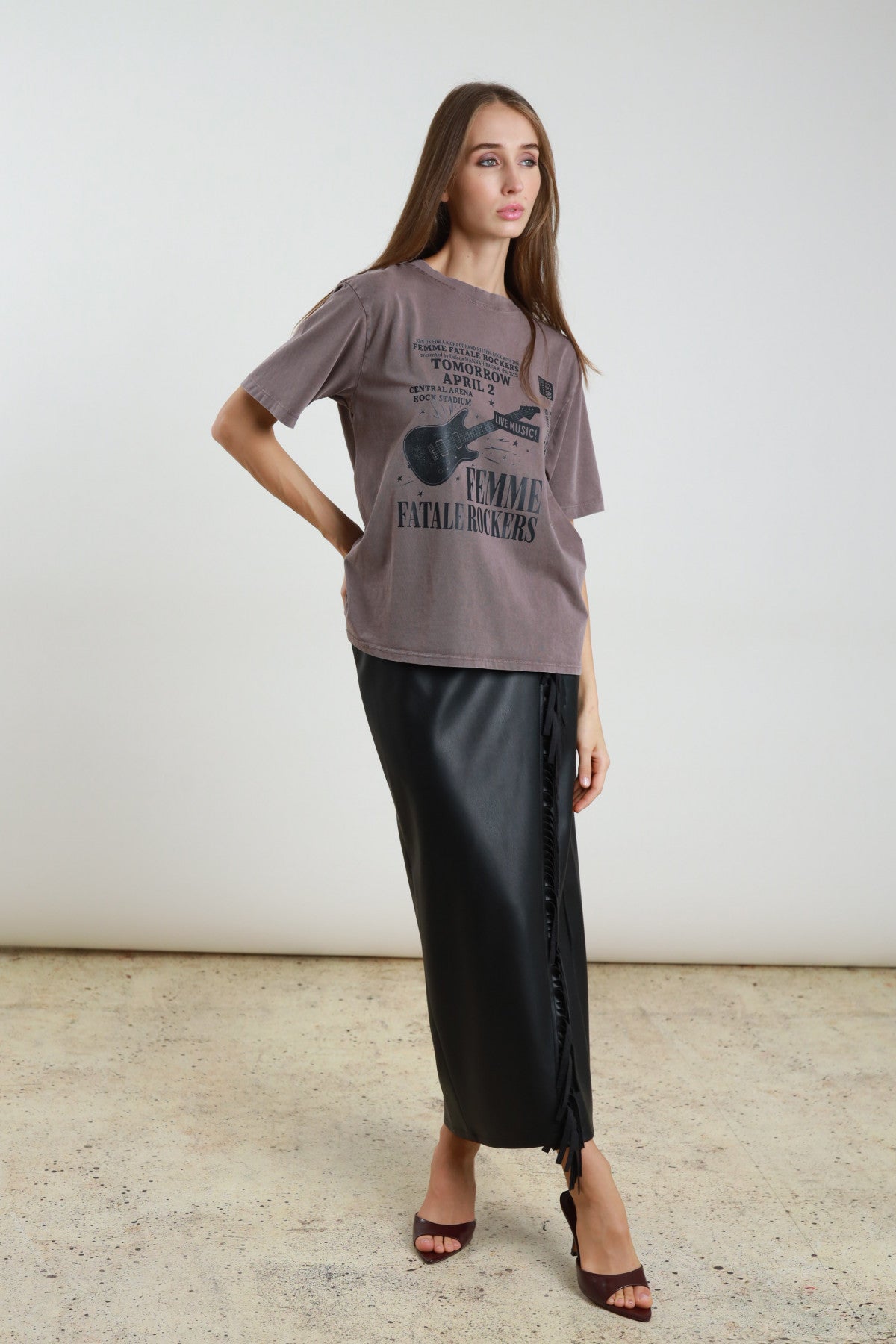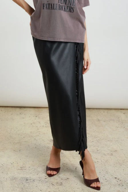 Gonna Pareo in Ecopelle con Frange sullo Spacco.