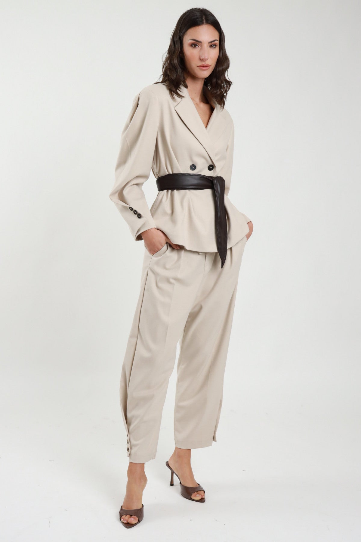 Pantaloni Taglio Ovetto, Tasche Laterali e 3 Bottoni a Lato Sul Fondo.