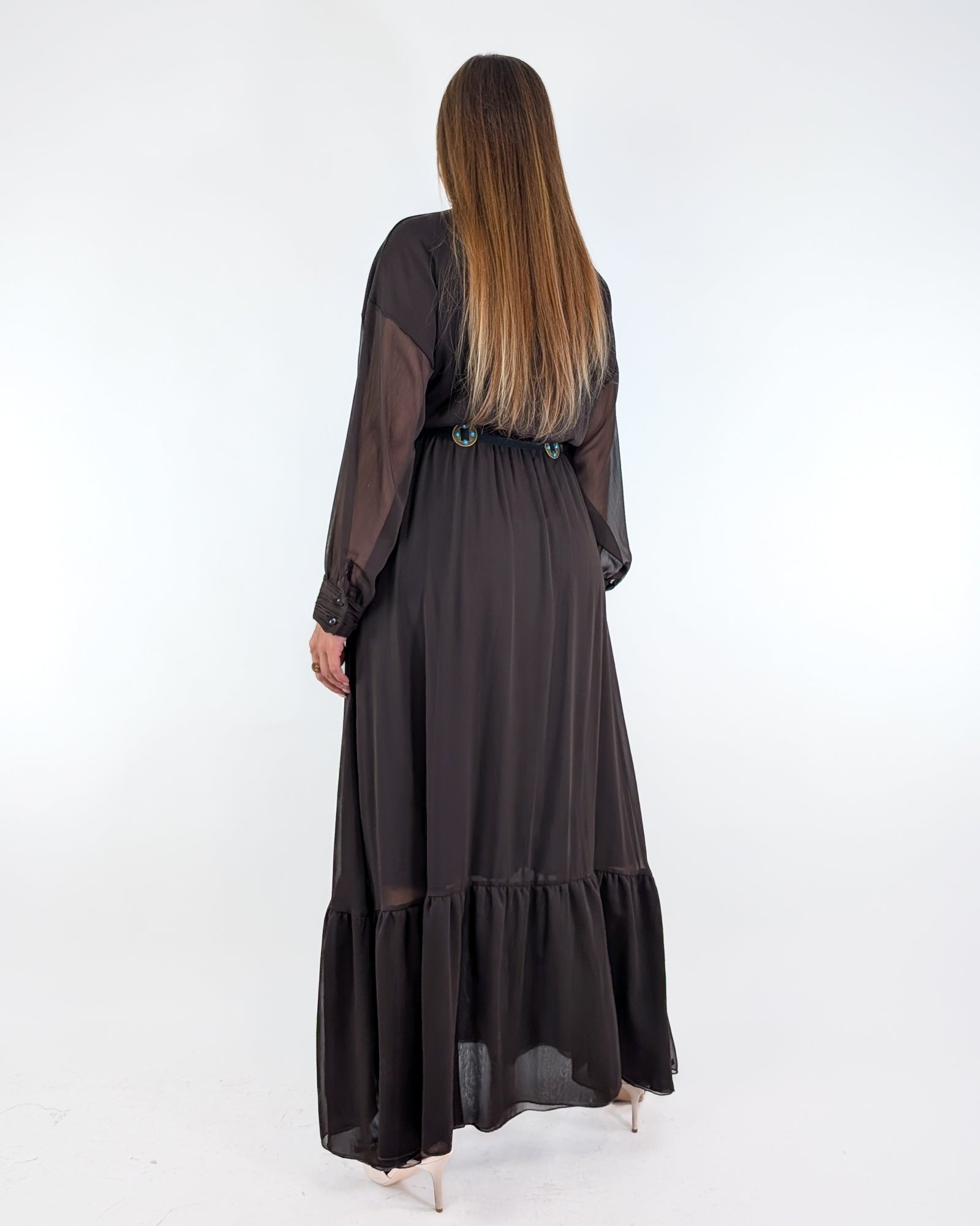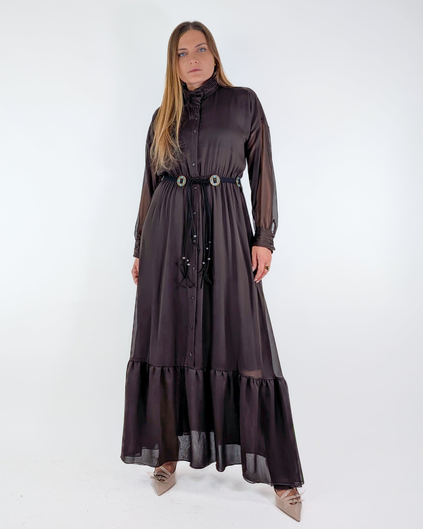 Abito modello chemisier con sottoveste e cintura.