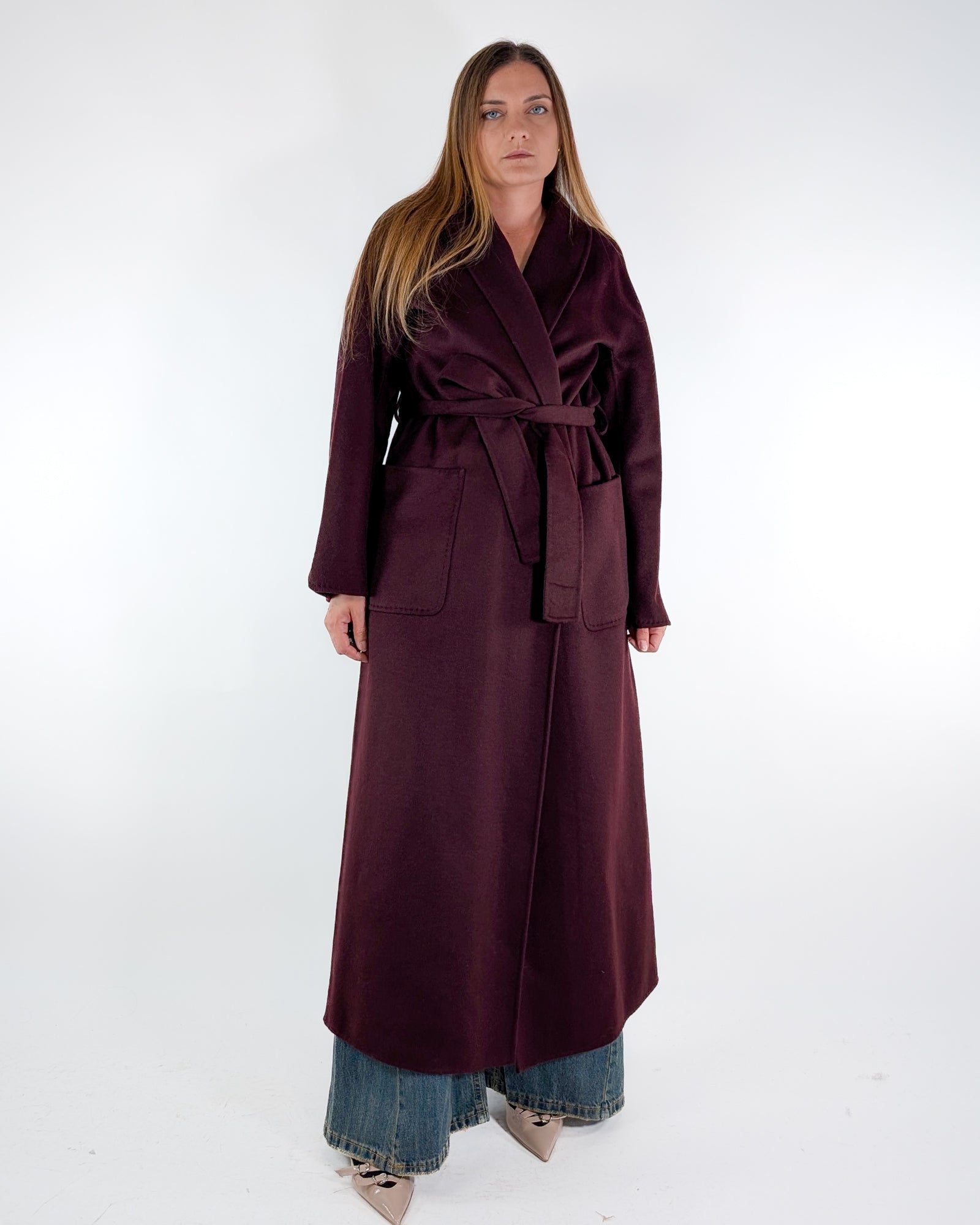 Cappotto lungo hand made dallo stile vestaglia, caratterizzato da una linea morbida e avvolgente. Privo di fodera.