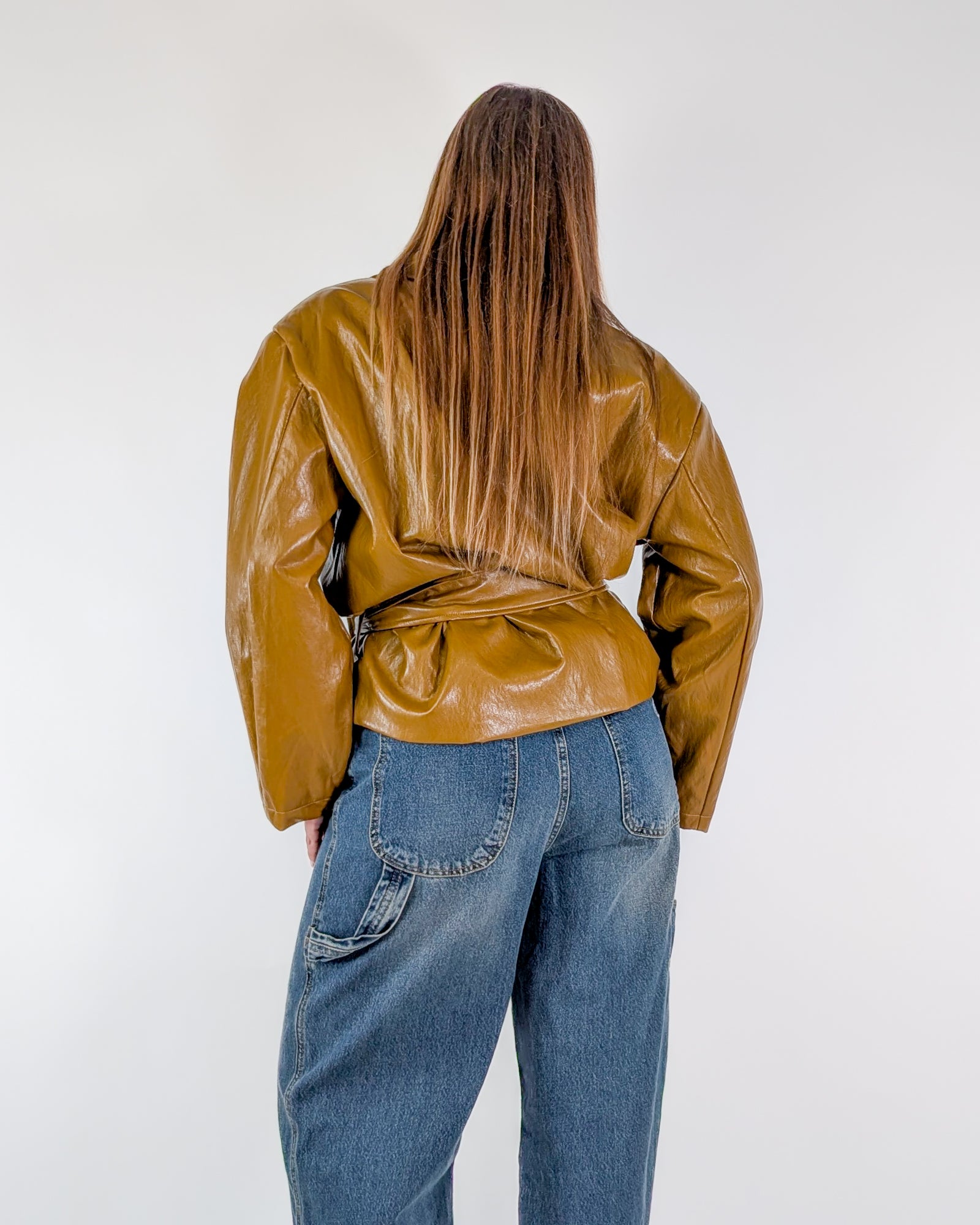 Giubbotto in ecopelle con cinta.