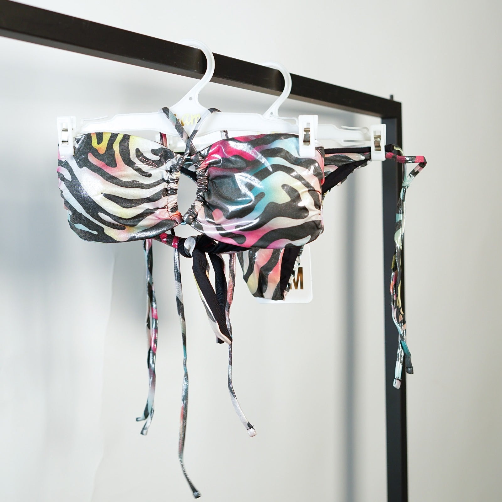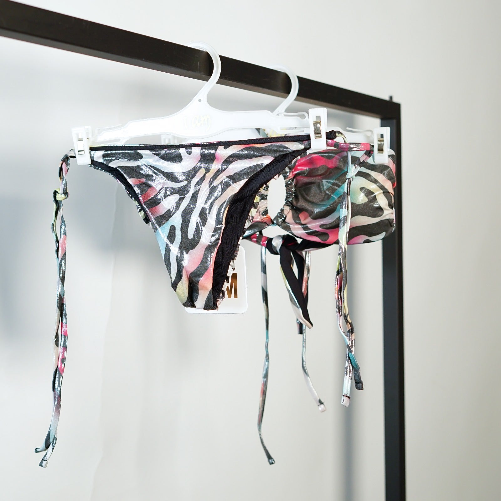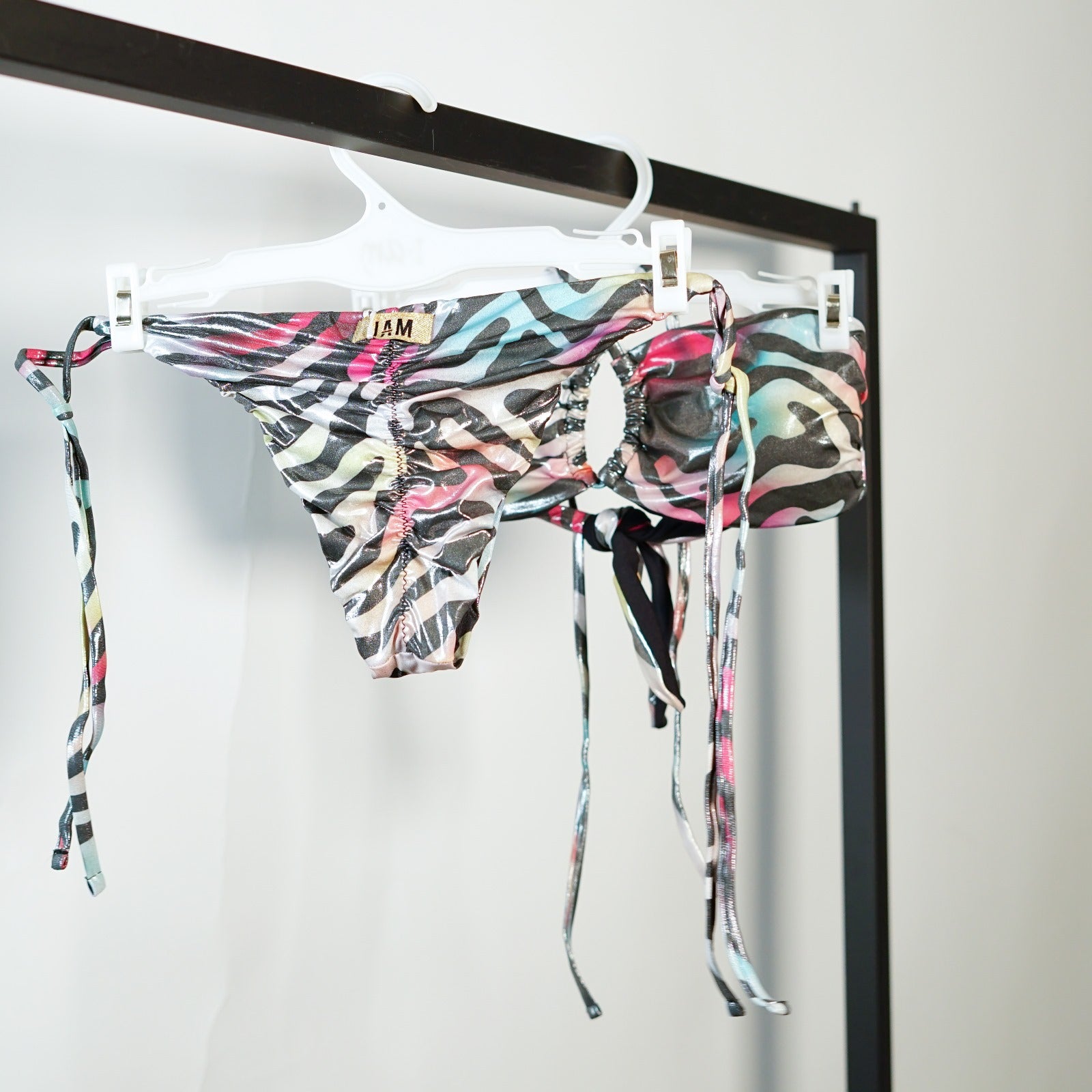 IAM Bikini a fascia animalier con laccetti regolabili e coppette estraibili.