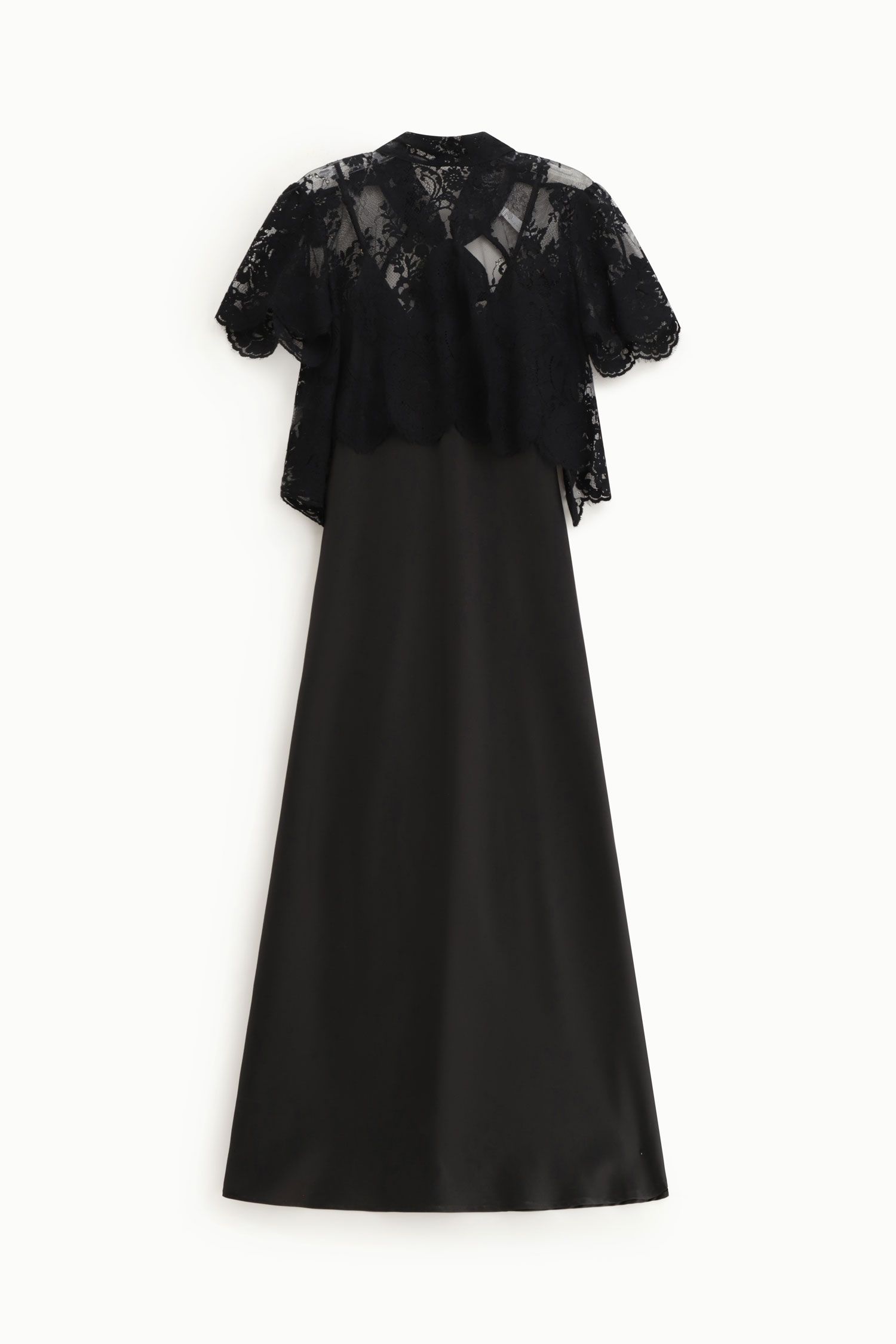 Questo abito lungo è un'incantevole fusione di stile e grazia, con delicato pizzo che abbraccia la parte superiore e scende elegantemente verso il basso. Le maniche corte aggiungono un tocco etereo, mentre il design essenziale permette di esprimere la propria individualità con facilità. Ideale per chi cerca eleganza in un formato senza tempo.