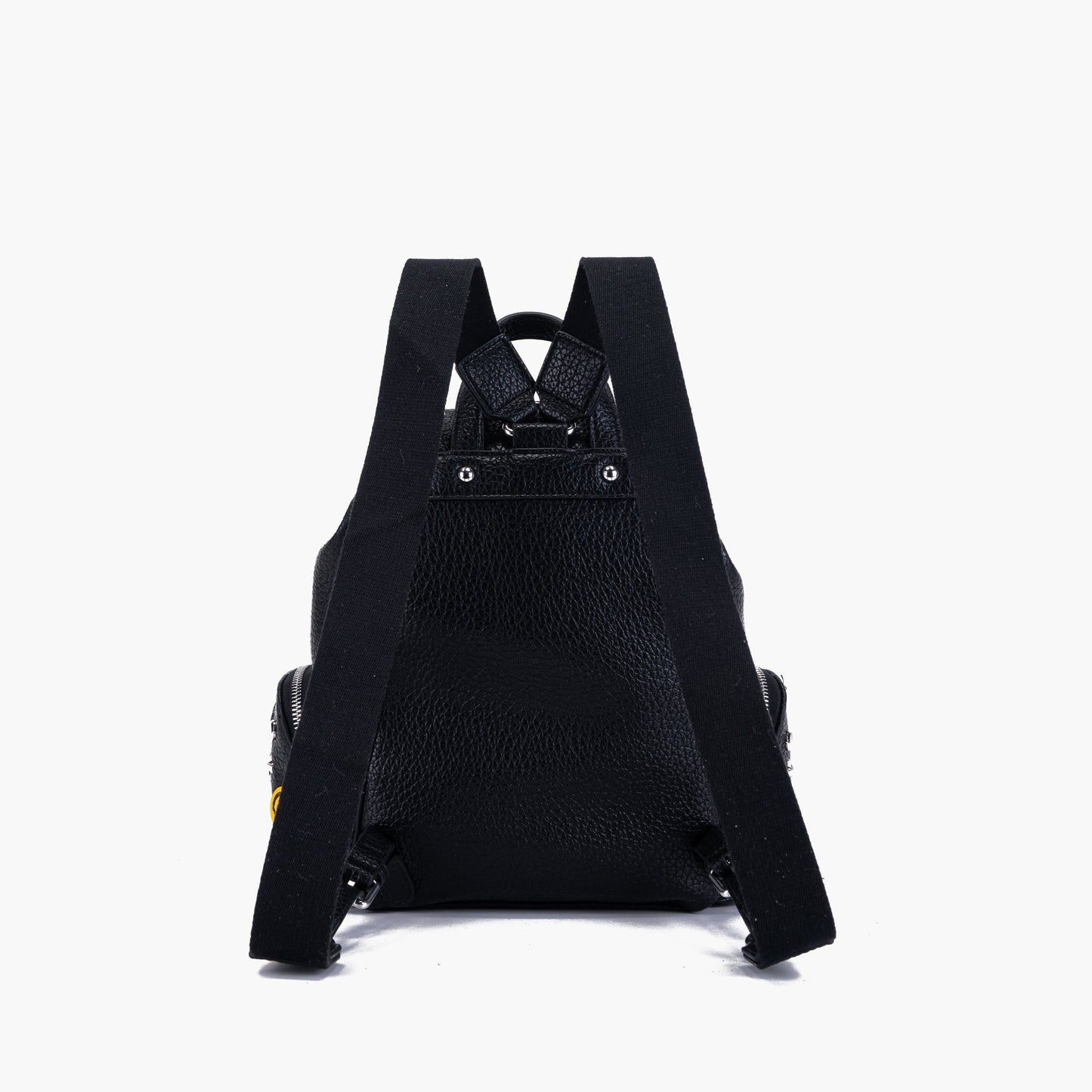Zaino in ecopelle martellata con spille colorate.