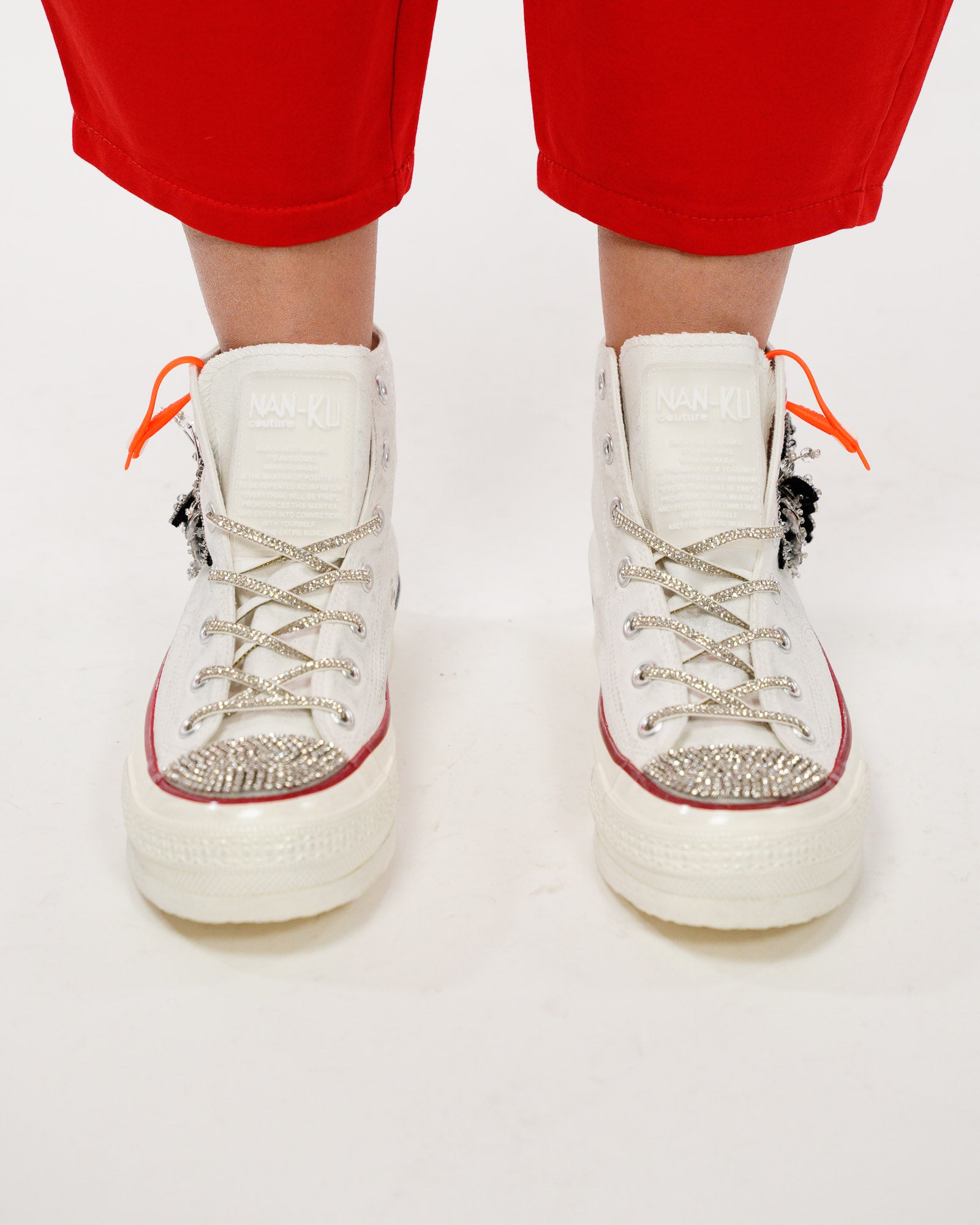 Sneakers gioiello in tela con strass e lacci di ricambio.