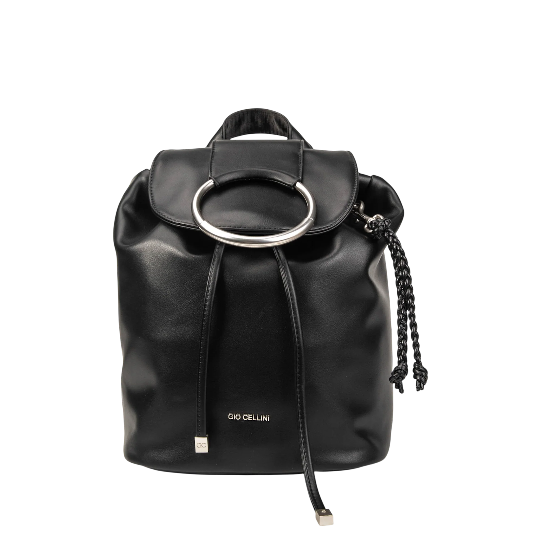 Zaino in ecopelle liscia con logo GIO CELLINI lettering finitura argentata