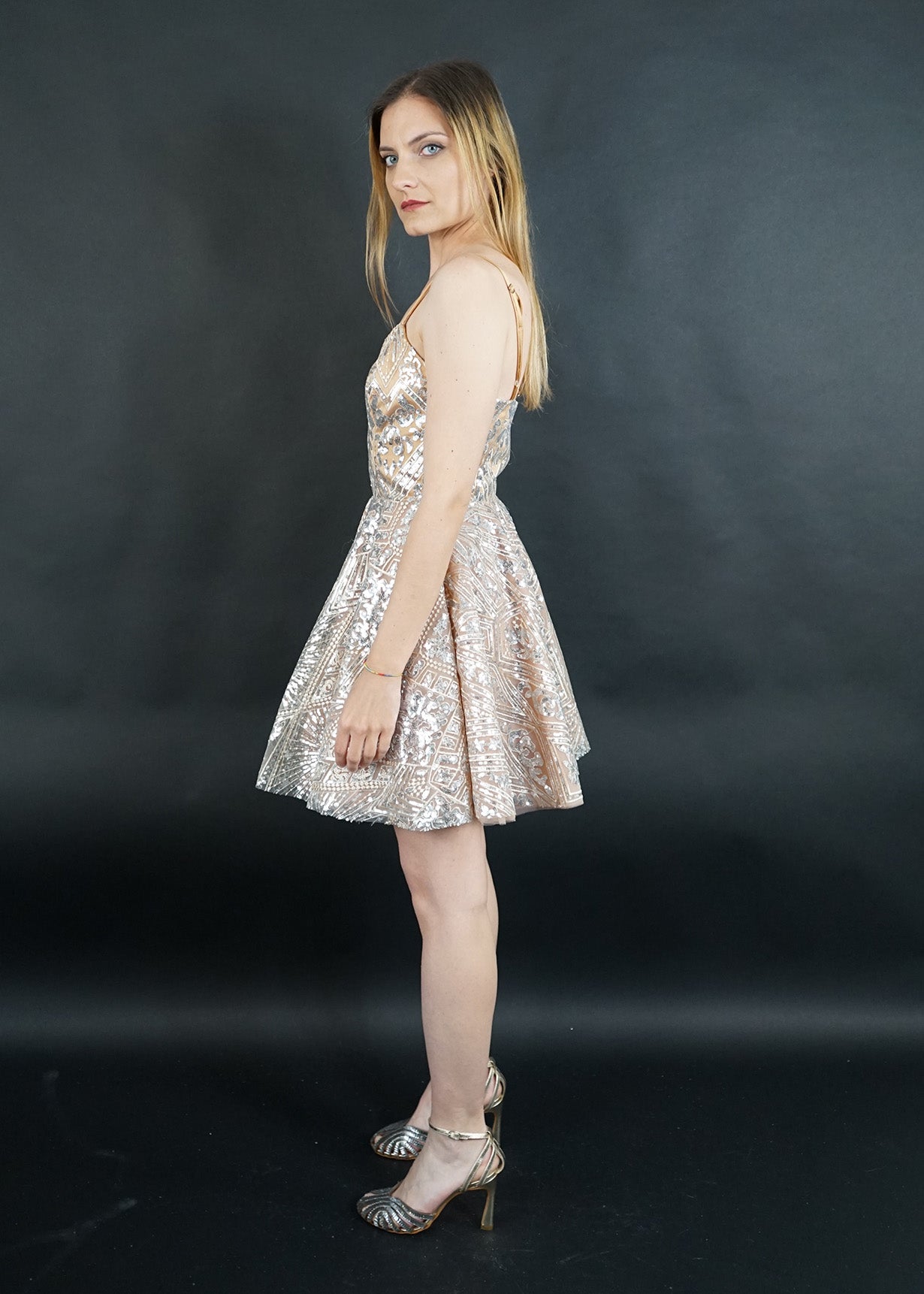 L'abito Fellon, un capo gioiello che sa unire, attraverso elementi preziosi, classe e raffinatezza. Uno dei pilastri della collezione Luxury, caratterizzato da tessuti con applicazioni gioiello e sostegno in tulle. Questo abito è perfetto per brillare ad ogni evento!