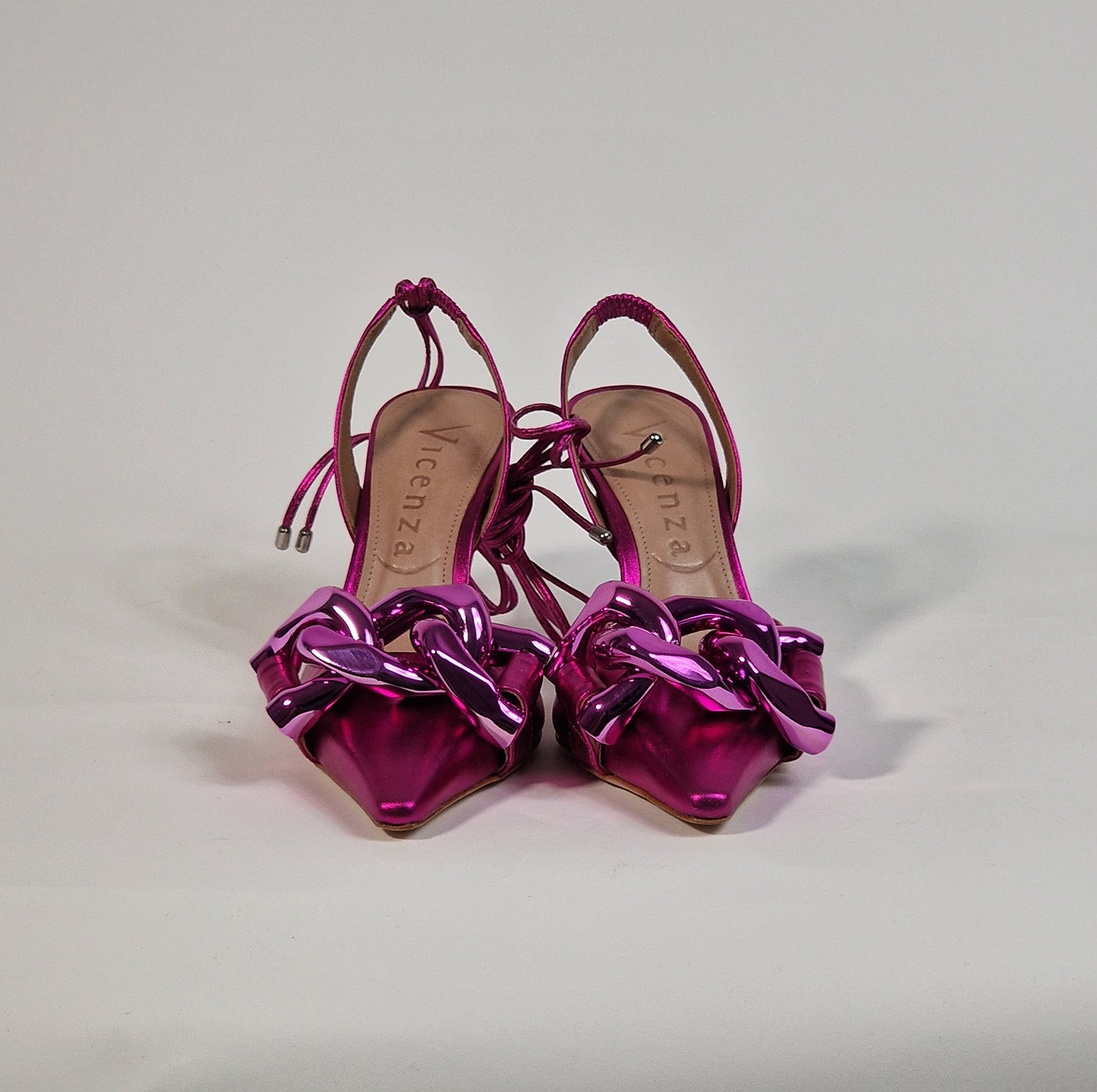 La VICENZA è una scarpa da donna realizzata in pelle laminata di colore cristal peonia è dotata di accessorio maxi ed un tacco da 9 cm. Il fondo è in cuoio con sottopiede in pelle. Una scarpa perfetta per tutti gli stili ed occasioni.
