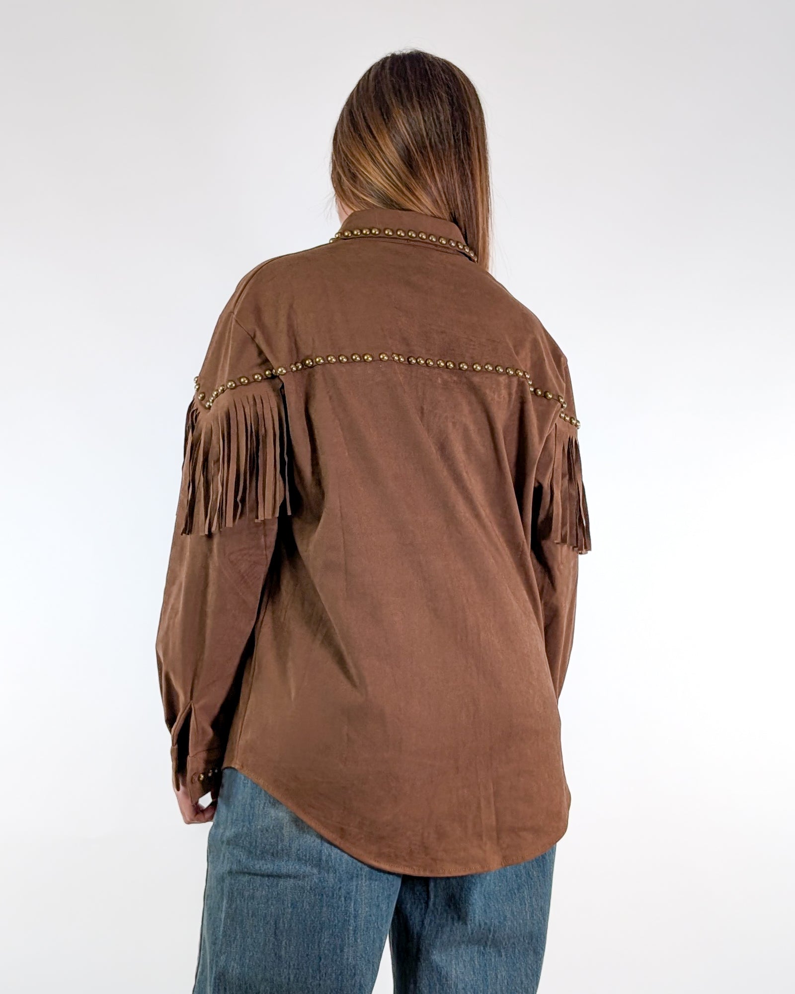 Camicia in dainetto con frange.