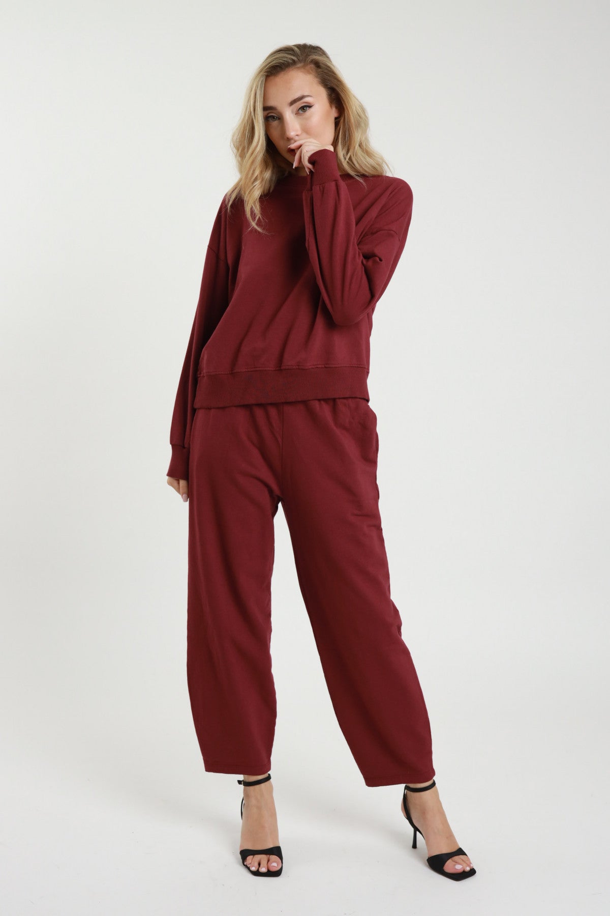 Completo Composto da Felpa Girocollo + Pantaloni Dritti sul Fondo.