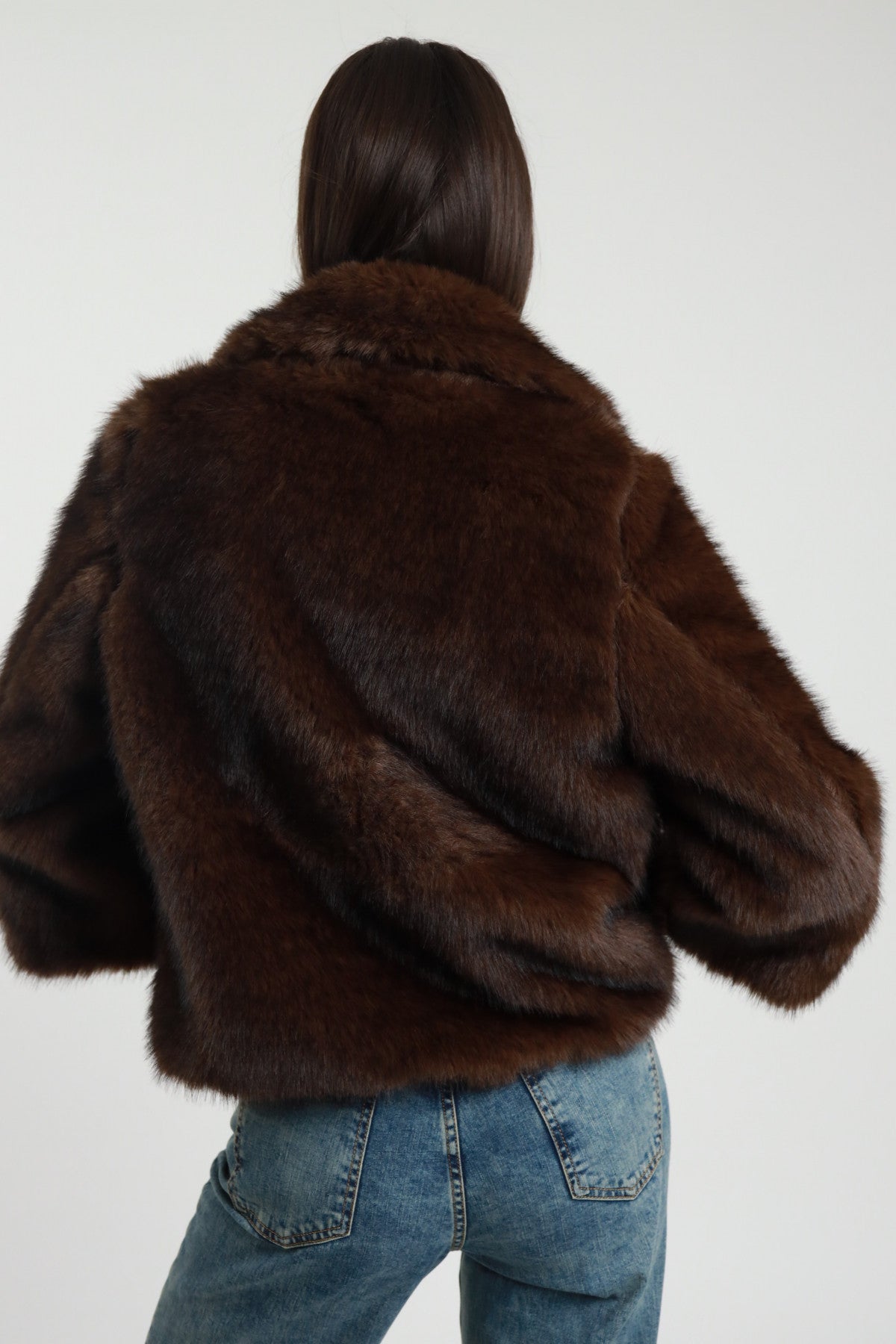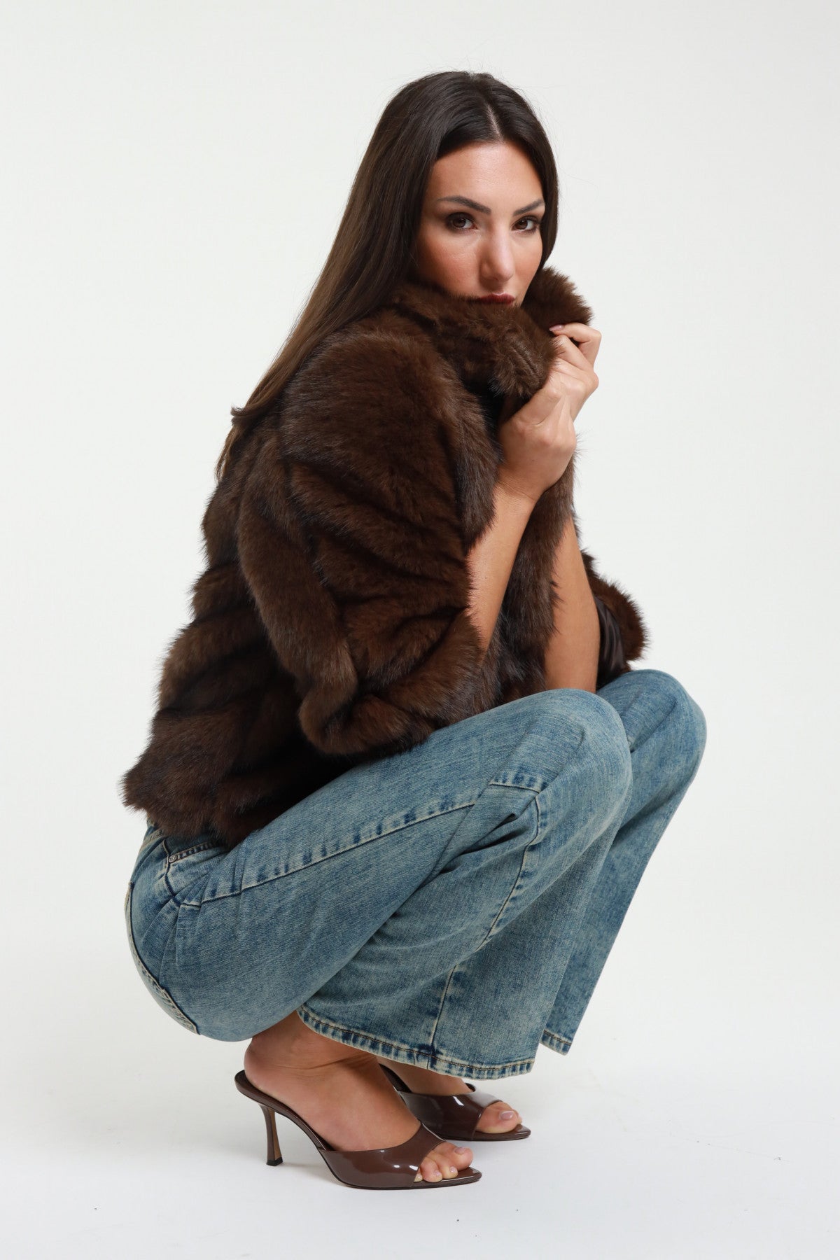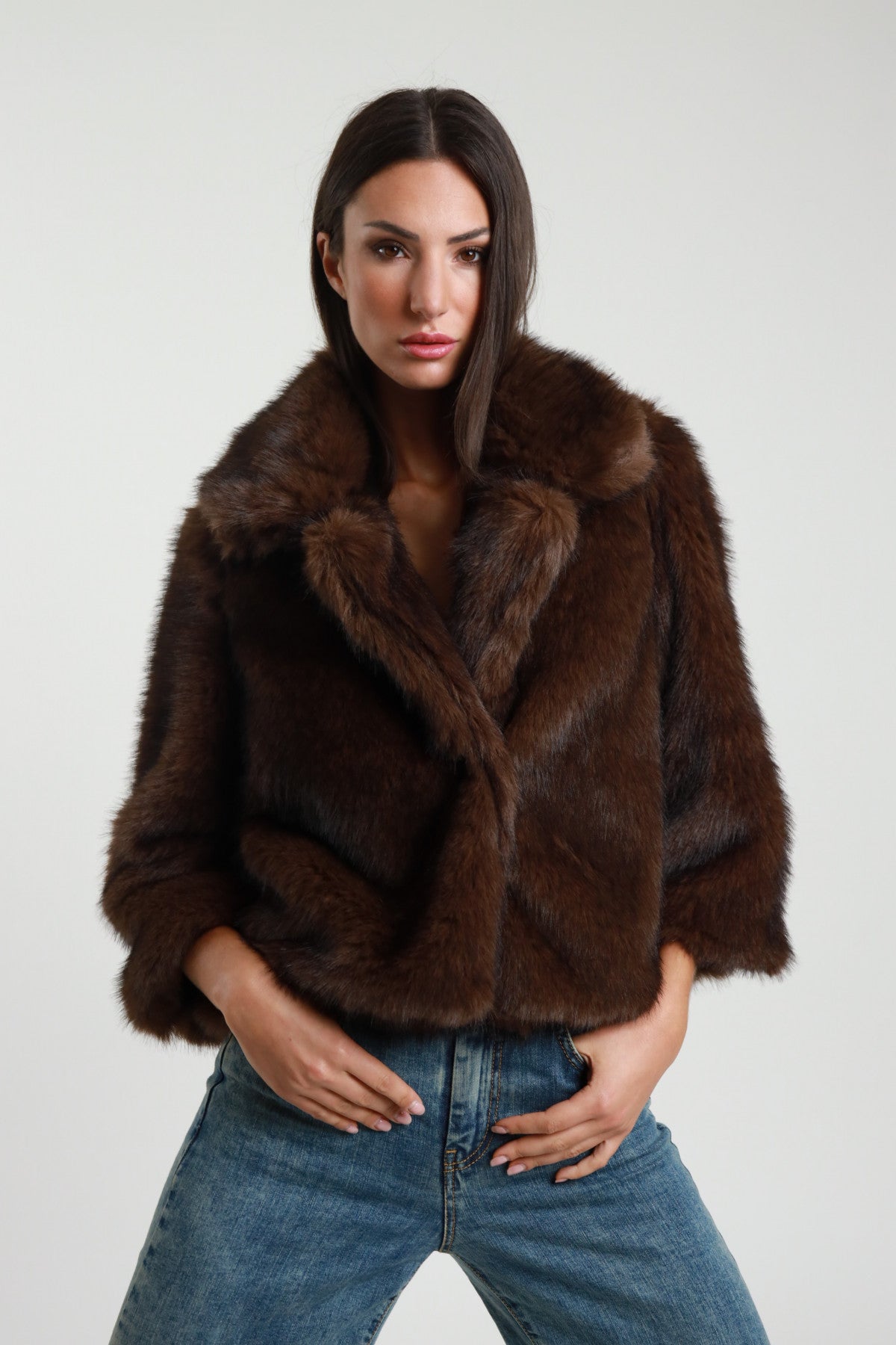 Ecopelliccia Corta con Maniche 3/4 e Chiusura un Bottone a Clip.
