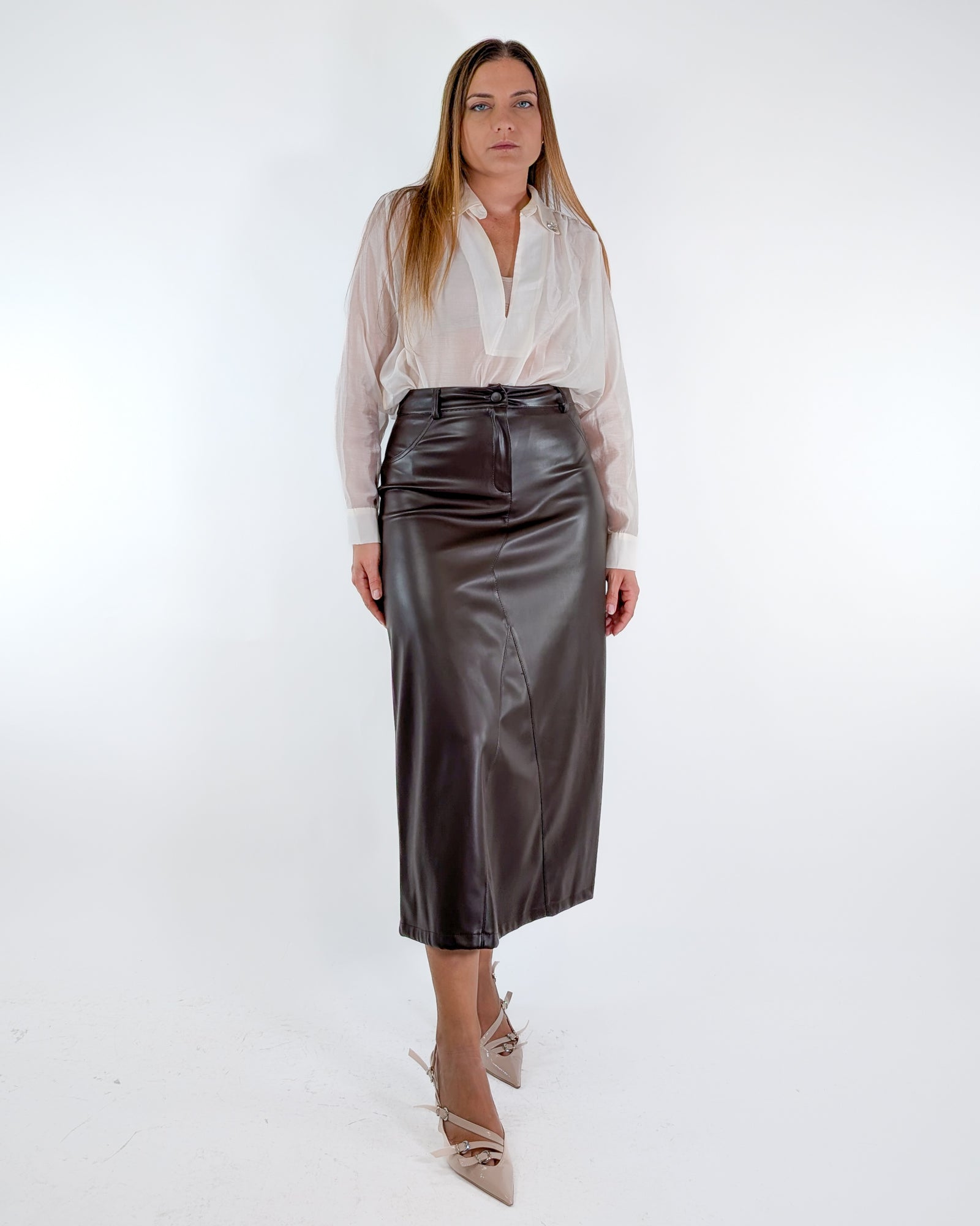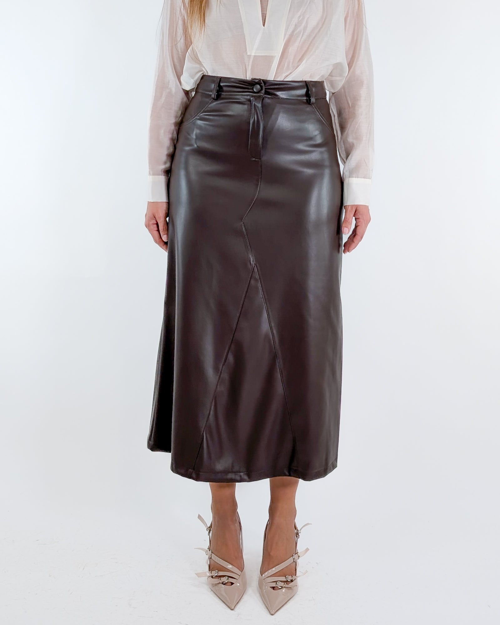 Gonna midi in ecopelle.