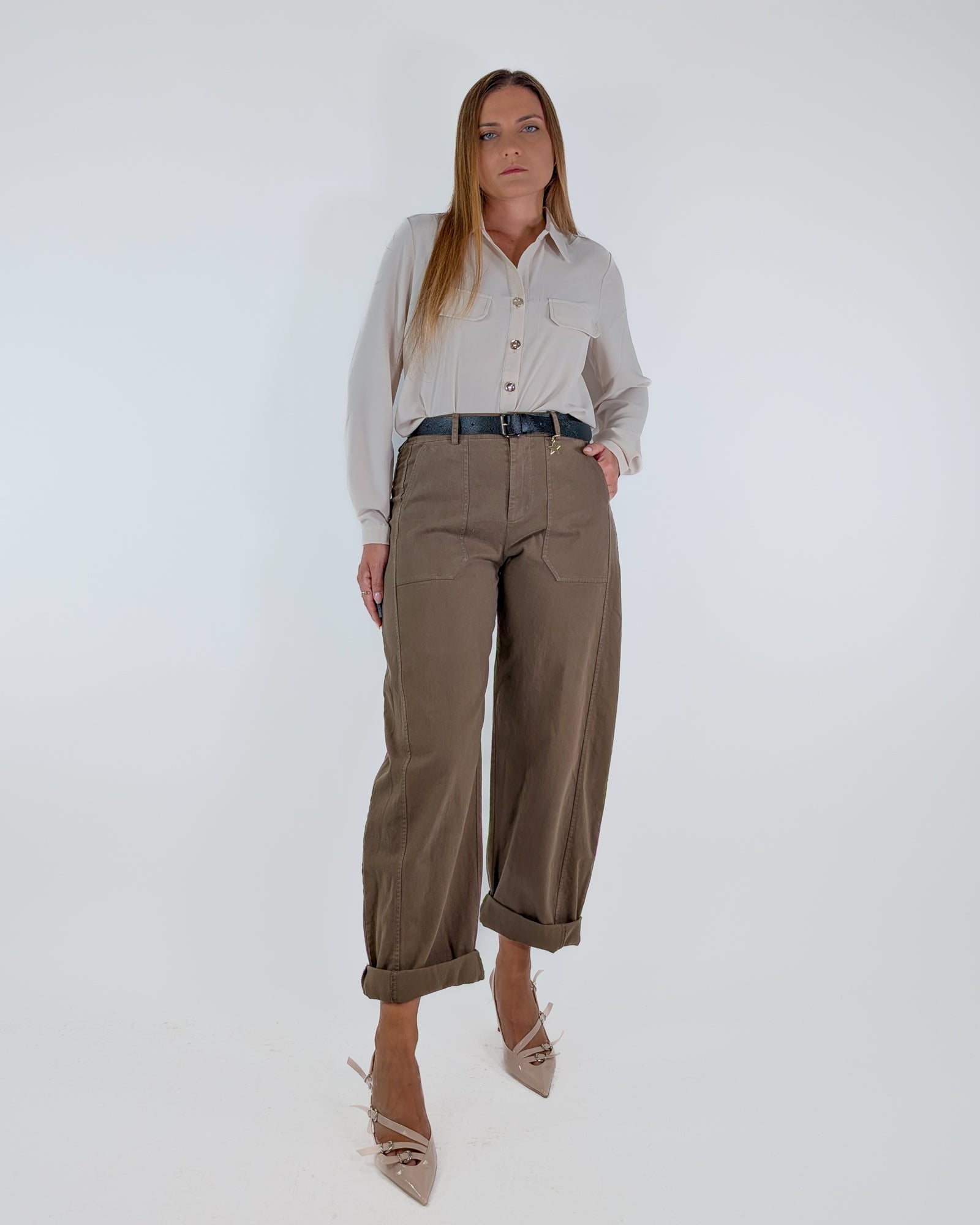 Pantalone a ovetto con cintura.