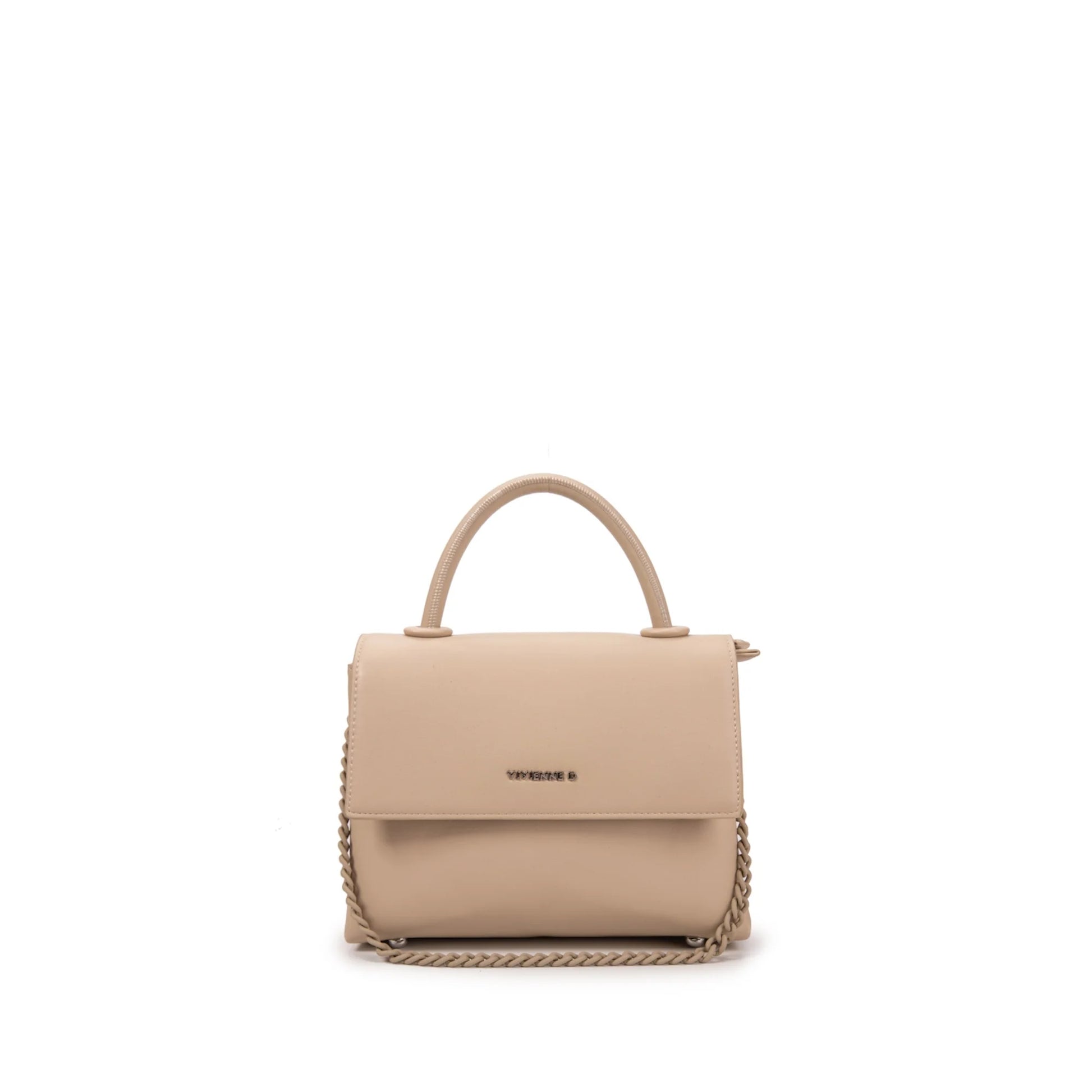 Mini bag in ecopelle liscia, due tasche interne di cui una con zip, logo VIVIENNE D finitura argentata